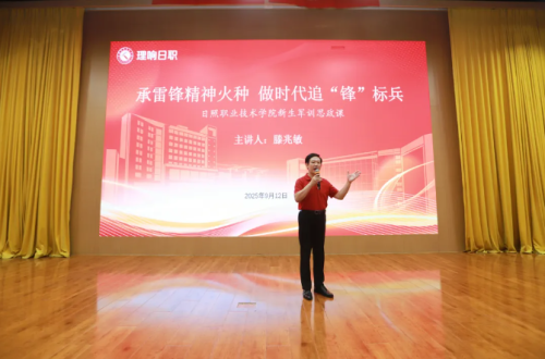 中国雷锋报山东讯(曹道伟)9月12日晚,山东日照职业技术学院报告厅一片热闹,日照市东港区教育局民族团结教育教研室主任、全国创建新时代雷锋学校办公室副主任、全国学雷锋办公室讲师团副团长滕兆敏老师,受邀为2025级新生作《承雷锋精神火种 做时代追“锋”标兵》的专题报告,呈现了一堂“走新”更“走心”的军训思政课!